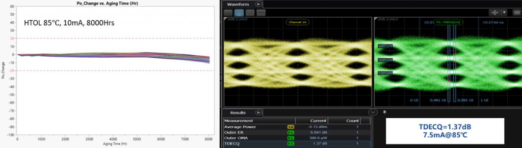華辰芯光 50G PAM4 VCSEL 光芯片產(chan) 品可靠性和模塊眼圖特性