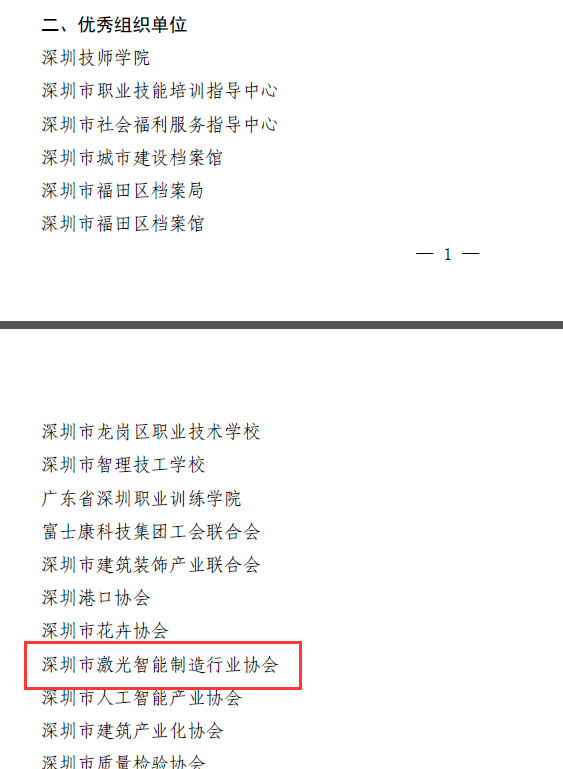 值得一提的是,深圳市激光智能製造行業(ye) 協會(hui) 被認定為(wei) “優(you) 秀組織單位”。