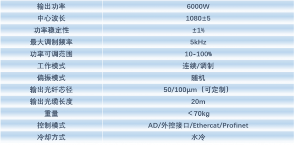 6000W連續光纖激光器輸出功率線性相關(guan) 性99.94%,功率波動性小於(yu) ±1%,輸出功率穩定性強。