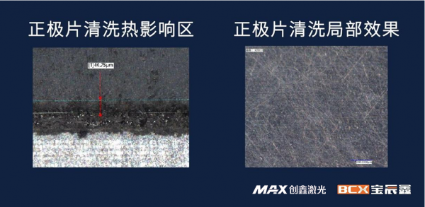 在清洗與(yu) 表麵處理上,MOPA 500-2000W脈衝(chong) 單模激光器展現出獨特的優(you) 勢,它可以進行極片清洗、藍膜(漆)清洗、電池極柱/注液孔清洗、電池鋁殼清洗等。無論哪一道工藝對激光技術的應用都有著嚴(yan) 格的要求,寶辰鑫激光對每一種材料、工藝進行了深入研究與(yu) 反複試驗,有針對性地對每種工藝進行開發,並得到認證:
