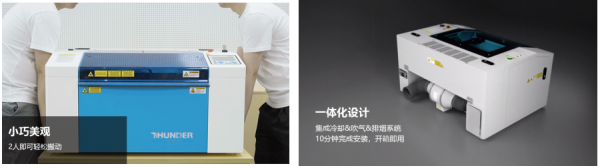 這是一款小巧而強大的新一代生產(chan) 力工具,Thunder Bolt解決(jue) 了以往激光切割機搬運難的痛點,淨重僅(jin) 77kg,2人即可輕鬆搬運,且集成冷卻、吹氣和排煙係統,一體(ti) 化的設計減輕繁瑣,可以更加輕鬆地實現創意。