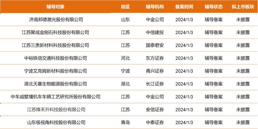 近日,邦德激光、聚成科技等9家公司啟動A股IPO輔導。