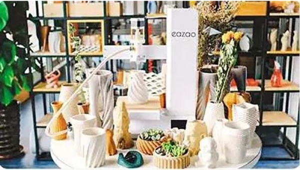 劉文強的辦公室裏擺滿了花瓶、水杯、擺件等大大小小顏色各異的陶瓷製品,這些都是他開發的陶瓷3D打印機製作的。與(yu) 其說是辦公室,倒不如說更像一個(ge) 陶藝DIY手工作坊。劉文強說:“陶瓷3D打印機大大降低了藝術創作、藝術體(ti) 驗的成本。”