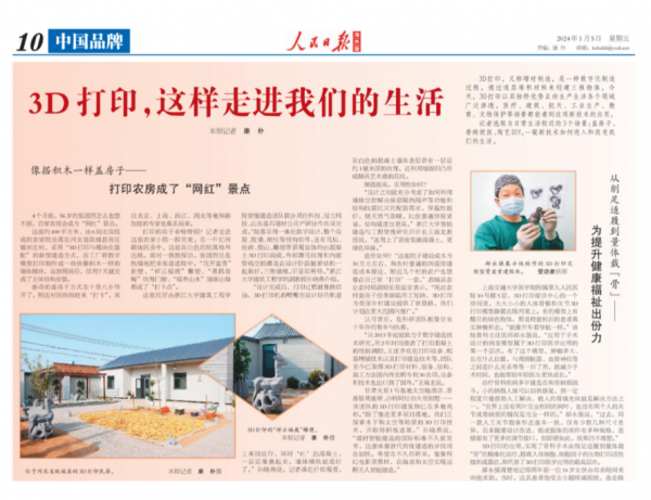 3D打印,又稱增材製造,是一種數字化製造過程,通過逐層堆積材料來創建三維物體(ti) 。今天,3D打印以其獨特優(you) 勢正向生產(chan) 生活各個(ge) 領域廣泛滲透,醫療、建築、航天、工業(ye) 生產(chan) 、教育、文物保護等場景都能看到這項新技術的應用。