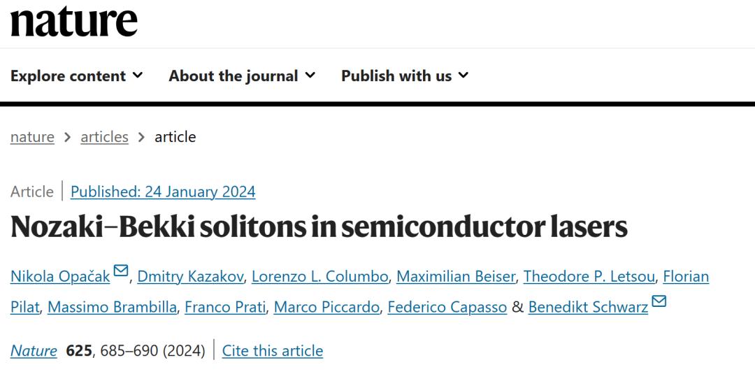 Opačak, N., Kazakov, D., Columbo, L.L. et al. Nozaki–Bekki solitons in semiconductor lasers. Nature 625, 685–690 (2024).