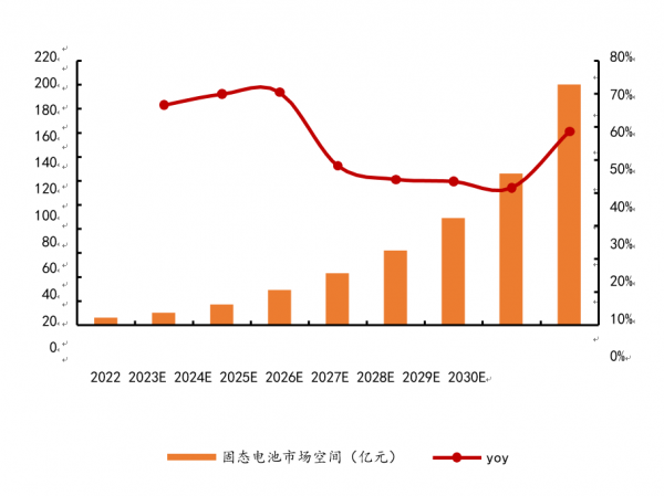 2022-2023年國內(nei) 動力電池市場趨於(yu) 飽和,鋰電市場投資逐步放緩,對上下遊產(chan) 業(ye) 鏈產(chan) 生一波衝(chong) 擊。隨著固態電池的安全性高、續航裏程長、充電時間縮短等優(you) 勢的顯現,頭部電池製造企業(ye) 和國內(nei) 外車企已陸續轉戰部署固態電池,固態電池有望迎來新一輪的市場高峰(圖1、圖2數據來源於(yu) :中商產(chan) 業(ye) 研究院,東(dong) 方財富證券研究所)。