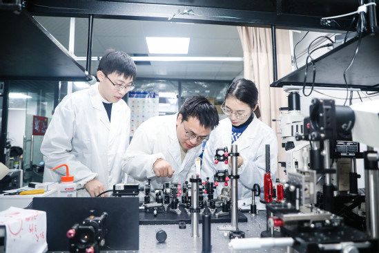 論文共同第一作者博士生朱潤琳、顧兆麒、沈天賜(從(cong) 右至左)