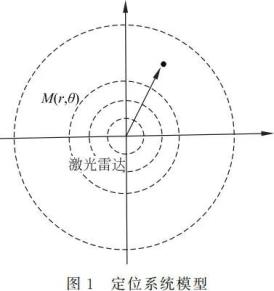 文中以激光雷達為(wei) 中心,即坐標原點,利用激光雷達測距,同時記錄掃描角度,所獲得的目標點距離標準位置(激光雷達)的角度和距離的信息,經過坐標轉化,將極坐標係中的(r,θ)轉化為(wei) 直角坐標係中的(x,y)。此過程為(wei) 一次測量流程,為(wei) 了提高定位精度,通過多個(ge) 標準位置(即激光雷達不同位置為(wei) 中心)對目標點位置測定,實現多次測量確定目標點位置。具體(ti) 定位係統模型構建如圖 1 所示:坐標原點 O 為(wei) 激光雷達的位置,· 為(wei) 目標點即待定位點 M 所處位置,激光雷達在坐標原點進行 360° 全方位旋轉掃描,發射端對環境發射激光束進行采樣,同時接收端接收從(cong) 目標點反射回來的信號,信號處理端將接收信號與(yu) 發射信號進行比較、檢測、處理,最後根據匹配結果[1],獲得目標點 M 的位置信息(r,θ),經過坐標變換 x =r sinθ,y =r cosθ,得到點 M(x,y)。