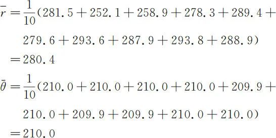 測量係統定位是否準確是由其對所測點 M 到激光雷達的距離即以激光雷達為(wei) 圓心的半徑 r 和方位角 θ 的測量的準確性共同決(jue) 定的。為(wei) 了檢驗測量係統測距和方位角測量的準確性,在一平麵上繪製極坐標,對測量係統分別進行測距和測角兩(liang) 種情況驗證。