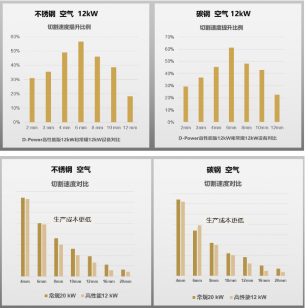 D-Power高性能12kW與(yu) 常規12kW和20kW切割速度對比