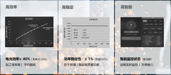 當下,各大激光器和激光設備廠家在追求高功率的同時,尤其注重產(chan) 品的高性能、高穩定性。而D-Power光纖激光切割機搭載的高性能激光發生器獨具四大顯著優(you) 勢:高效率、高智能、高穩定、高安全性。其高效率特性體(ti) 現在電光效率高達40%以上,顯著提升加工效率,有效節約能耗;高穩定性則表現在功率波動極小,穩定性不超過1%,抗幹擾能力強,確保持續穩定的切割作業(ye) ;高智能特點在於(yu) 智能監控運行狀態,實時可控,為(wei) 用戶提供便捷省心的使用體(ti) 驗。