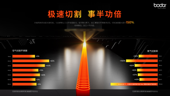 在激光切割技術的研發中,邦德激光在行業(ye) 首創激光掃描切割機新品類,徹底顛覆行業(ye) “功率即效率”的固有觀念,實現同等功率下的“速度倍升、厚度倍增、無懼高反”,重新定義(yi) 激光切割機的未來。