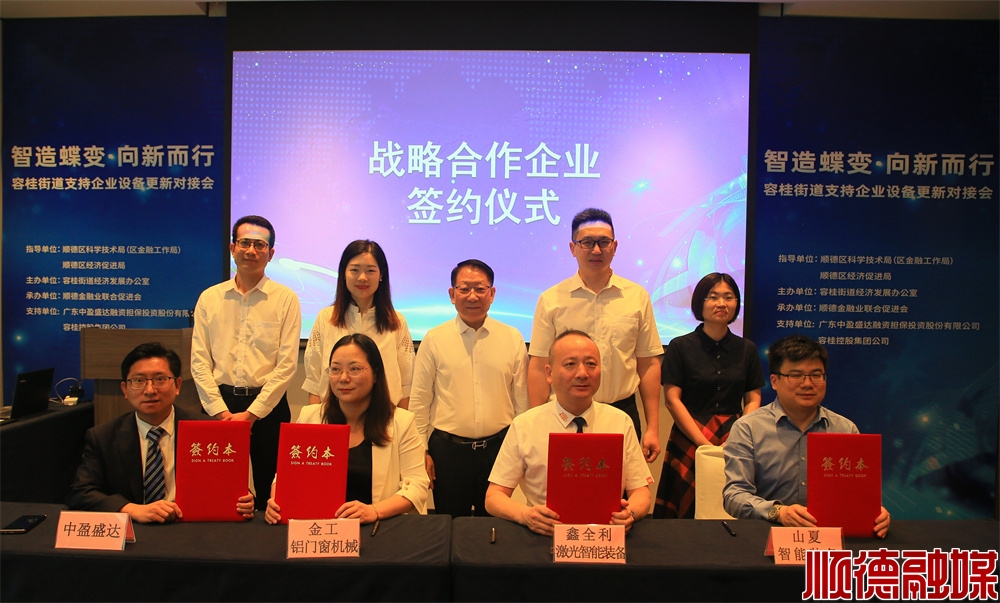 借力“金融+本土服務商”,容桂支持地方金融上市公司中盈盛達與(yu) 山夏智能裝備、金工鋁門窗機械實業(ye) 、鑫全利激光智能裝備等企業(ye) 達成戰略合作,助力裝備製造業(ye) 開拓市場。