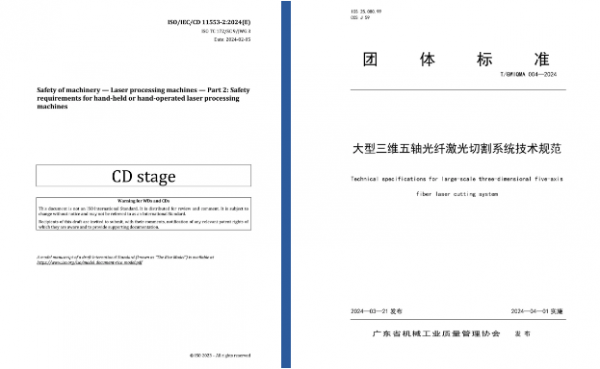 在強大研發實力的基礎上,宏山不斷發揮引領作用,積極引導相關(guan) 標準製定。參與(yu) 中國機床工具工業(ye) 協會(hui) 首批《二維激光切割機床 典型試件切割精度評定》、填補國內(nei) 手持式激光標準國際化空白的《手持式激光加工技術標準聯盟和國際標準》評定、廣東(dong) 省機械工業(ye) 質量管理協會(hui) 立項批準的《大型三維五軸光纖激光切割係統技術規範》團體(ti) 標準等。