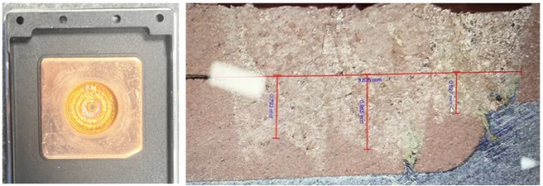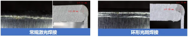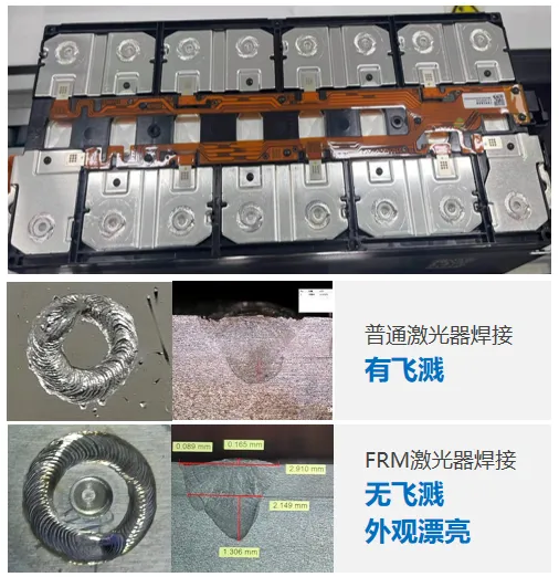 與(yu) 單光斑激光焊接相比,光惠激光FRM環形光斑係列激光器,可以在焊接過程中做到:焊接幾乎無飛濺、無爆點、針孔、凹坑,表麵均勻一致,大大提升生產(chan) 良品率。 01、方形電池激光焊接——Busbar焊接 Busbar焊接應用主要是對鋁合金材料的疊焊,光惠激光FRM可調光束激光器係列產(chan) 品在焊接過程可輕鬆實現焊接速度≥100mm/s,焊接過程無飛濺,焊縫表麵成型較好。從(cong) 橫截麵可以看出,焊縫處無氣孔,均勻一致,焊縫連接寬度可達2.3mm,巴片與(yu) 極柱的焊接接頭剪切力>1kN。 Busbar焊接 02、方形電池激光焊接——極柱焊接 電池極柱即電池的正負極,一般正極采用鋁,負極采用銅。焊接時,在滿足設計要求的拉力和導電性能的情況下,光惠FRM可調光束光纖激光器可以實現:電極柱的鋁-鋁結構焊接、銅-銅結構焊接的更高穩定性,更少飛濺,進而提升焊接良率。 03、圓柱電池激光焊接——封口焊接 封口焊接的主要材料為(wei) 頂蓋片或電芯殼(鋁Al3003),光惠激光FRM產(chan) 品在封口焊接過程中,焊接速度≥200m/s,熔深>1.0mm,且極柱和塑膠件無燒熔,焊接連接處無虛焊、無焊渣、無爆孔,焊縫內(nei) 部無氣孔、無裂紋。 電芯封口焊接(側(ce) 焊) 04、圓柱電池激光焊接——密封釘焊接 密封釘焊接又叫注液口焊接,當電解液注入電池後,需塞上膠塞馬上進行激光焊接密封,進而將整個(ge) 卷芯與(yu) 外部環境隔離,整個(ge) 卷芯形成一個(ge) 密閉的電化學係統。FRM係列產(chan) 品可以使焊接速度≥60mm/s,焊接過程無飛濺,焊縫成型美觀均勻無爆孔,產(chan) 線一次良率大大提升。 密封釘焊接 05、扁線電機焊接 銅,作為(wei) 電驅電機係統主要材料,其對吸收率、導熱係數等材料本身因素,導致加工過程中容易產(chan) 生大量飛濺和氣孔。光惠激光FRM產(chan) 品能有效修正匙孔形狀,維持匙孔穩定,提高扁銅線的焊接質量和焊接效率。 GW光惠激光在新能源電池焊接領域的引領地位不僅(jin) 體(ti) 現在卓越的產(chan) 品性能上,更體(ti) 現在對客戶的關(guan) 注與(yu) 服務上。我們(men) 將始終堅持“以用戶為(wei) 中心”,通過不懈的技術創新與(yu) 優(you) 質服務,與(yu) 全球用戶緊密合作,為(wei) 客戶提供高性能、高效率的激光解決(jue) 方案,為(wei) 行業(ye) 注入新的技術方向,激發無限可能。