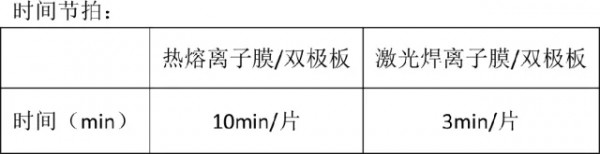 其次,較之傳(chuan) 統工藝,使用激光焊可節省30%以上的質子膜材料和30%以上的雙極板材料,也可節省相當多的時間成本。(具體(ti) 詳見下表)。