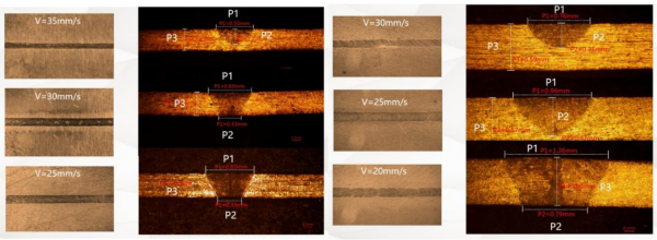 圖5 凱普林500/1000W藍光焊接0.3/0.6 mm T2 Cu 結果