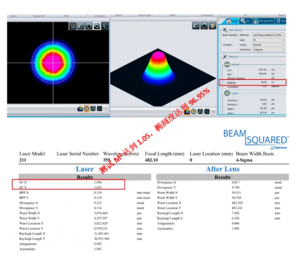 優(you) 勢二:光束質量高 團隊有著豐(feng) 富的熱管理設計經驗,對增益晶體(ti) 做特殊摻雜,提升熱導率,有效降低熱效應,在獲得高功率輸出的同時,有效控製光束質量。通過設計仿真與(yu) 實踐相結合的方式,多輪方案優(you) 化迭代,模式選擇最終實現基模TEM00輸出,M²<1.1,光斑橢圓度達>90%。