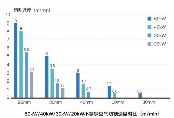 在切割20mm、30mm薄板相比於(yu) 20kW、30kW可實現翻倍提升。