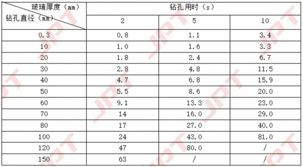 在玻璃鑽孔行業(ye) ,提高效率和降低成本是普遍的追求。解決(jue) 行業(ye) 痛點和難點是傑普特不懈發展的目標。更大的單脈衝(chong) 能量和更高的峰值功率顯著提升了加工效率。以下是使用YDFLP-200-M8-S-W-V2測試不同厚度和鑽孔直徑加工效率情況,僅(jin) 供參考。