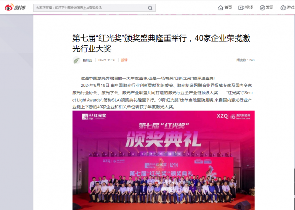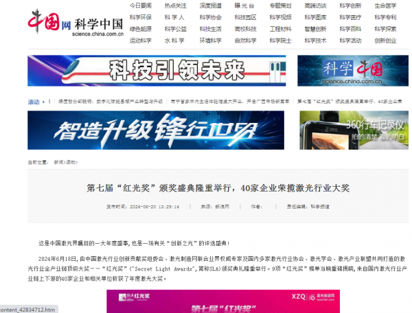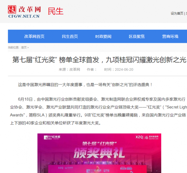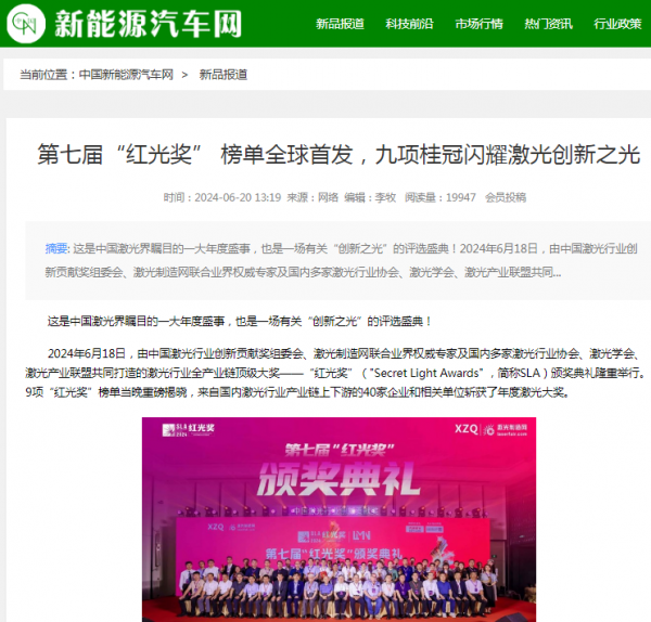 值得一提的是,此次報道活動,各大媒體(ti) 率先對頒獎典禮進行了報道,圖文並茂地呈現了頒獎典禮的全貌。有媒體(ti) 稱,“紅光獎”為(wei) 行業(ye) 樹立了標杆,激勵更多的企業(ye) 和科研團隊投身於(yu) 技術創新與(yu) 突破,推動激光技術邁向新的高度。作為(wei) 激光行業(ye) 的一項重要的評選活動,“紅光獎”不僅(jin) 為(wei) 行業(ye) 搭建一個(ge) 展示和交流的平台,也為(wei) 激光產(chan) 業(ye) 的永續發展注入了新的活力,持續推動激光技術的創新進步和產(chan) 業(ye) 的升級。