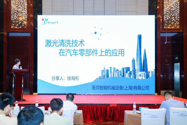 聖同智能激光裝備集團作為(wei) 一家“專(zhuan) 精特新、國家高新技術企業(ye) ”成為(wei) 此次大會(hui) 的特邀嘉賓,由銷售區域總監徐海彬先生分享了“激光清潔技術在汽車零部件上的應用”,聖同激光憑著特有的清洗技術優(you) 勢,多學科融合的高學曆、高素質人才團隊,研發了應用於(yu) 汽車零部件激光清洗專(zhuan) 用光源,並針對不同的汽車零部件清洗部位進行了個(ge) 性化設計工藝,確保汽車零部件產(chan) 品的清潔度達到最高。