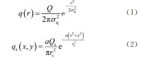 根據上文所述,本研究以高斯熱源為(wei) 研究對象。高斯麵熱源如圖 1上半部分所示,其熱通量方程如式(1)所示(q為(wei) 高斯熱源分布參數,Q為(wei) 熱輸 入功率,r為(wei) 距離焊接中心的距離)。基於(yu) 公式(1),將距離焊接中心的距離r以笛卡爾坐標係表示,同時細化高斯熱源分布參數,公式(1) 可以轉化為(wei) 公式(2)(rs為(wei) 麵熱源作用半徑,a為(wei) 麵熱源強度係數)。