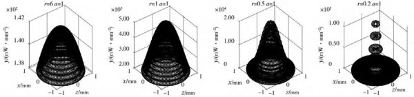 2)在數值模擬過程中發現了另外兩(liang) 種常用熔池形貌所對應的熱源模型。第一種可以作為(wei) 激光淬火等表麵局部熱處理的熱源模型,另一種可以作為(wei) 皮秒、飛秒激光超微細加工過程的熱源模型。
