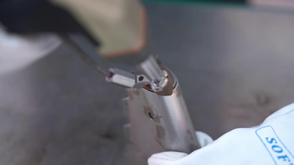 為(wei) 了應對複雜工況和工件任意部位任意焊接角度工藝的難題,K1M新焊槍體(ti) 積與(yu) 重量極致輕小,僅(jin) 重300g,增強控製手感和擺動焊接的控製感。另外利用內(nei) 置振鏡掃描,大幅降低操作工擺動的難度,經過簡單培訓就可以達成幾十年老焊工的技藝高度。