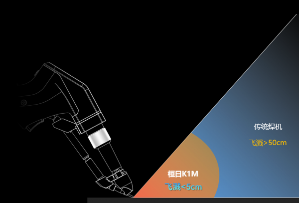 ▲飛濺半徑是傳(chuan) 統焊機1/10