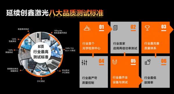 桓日激光紅桐產(chan) 品全球熱銷的底氣來源於(yu) 嚴(yan) 苛的品質管控,公司建立了行業(ye) 首個(ge) 光學檢測中心,也是行業(ye) 首家啟動兩(liang) 倍功率測試的廠商,針對新品定製最完善的質量體(ti) 係和嚴(yan) 苛的質量控製從(cong) 而達到行業(ye) 最低故障率,獨創的10000+次微跌碰撞、1000萬(wan) 次鎧纜拖鏈、6KV雷擊測試、高低溫測試、背帶負重拉力、淋雨粉塵檢測、鹽霧和酸堿腐蝕測試、高溫高濕測試等八大品質檢測為(wei) 產(chan) 品品質打造強勁的護城河。
