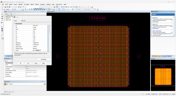 針對光伏行業(ye) 的圖形處理需求,CircuitCAM8推出了LaserSolar模塊。這個(ge) 模塊中,針對特定圖形的快速填充和計算、快速自動製圖等需求,推出了快速完成光伏圖形的填充計算的Solar_Fill功能;推出了以二次元掃描圖形為(wei) 基準,一鍵自動繪製光伏圖形的Solar_AutoDraw功能。
