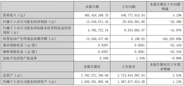 8月24日,深圳光韻達光電科技股份有限公司(以下簡稱“光韻達”或“公司”)發布了2024年半年度報告。報告期內(nei) ,公司實現營業(ye) 收入4.65億(yi) 元,同比增長4.18%,展現出較強的市場適應能力和發展韌性。然而,受行業(ye) 競爭(zheng) 加劇、成本上升及部分業(ye) 務周期性影響,公司淨利潤出現下滑,歸屬於(yu) 母公司的淨利潤為(wei) 1,335萬(wan) 元,同比下滑52.40%。