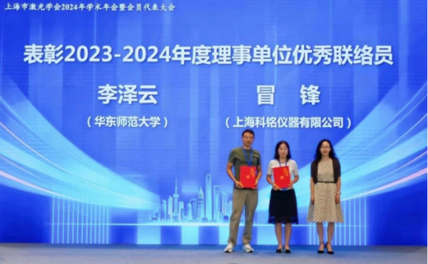 隨後,莊鬆林院士為(wei) 2023-2024年度優(you) 秀專(zhuan) 委會(hui) 激光工程與(yu) 技術專(zhuan) 委會(hui) 和激光婦科專(zhuan) 委會(hui) 頒獎,徐信業(ye) 主任和徐靈主任分別代表優(you) 秀專(zhuan) 委會(hui) 領獎。上海市科協陳馨副主席為(wei) 優(you) 秀理事單位聯絡員華東(dong) 師範大學李澤雲(yun) 、上海科銘儀(yi) 器有限公司冒鋒頒獎。