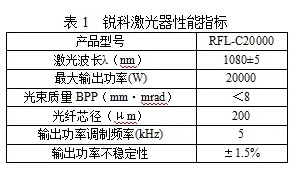 本文案例采用銳科高功率RFL-C20000連續激光器進行複合焊接,它具備光電轉換效率高、光束質量高、可靠性好、壽命長、免維護等特點,良好的性能為(wei) 焊接的穩定性提供了有力保證,其主要性能參數見表1。