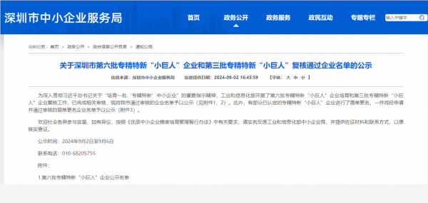 為(wei) 深入貫徹習(xi) 近平總書(shu) 記關(guan) 於(yu) “培育一批“專(zhuan) 精待新”中小企業(ye) ”的重要指示精神,工業(ye) 和信息化部開展了第六批專(zhuan) 精待新“小巨人”企業(ye) 培育工作,現已完成相關(guan) 審核。