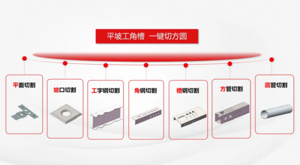 威士登WSD-E10-PLUS多合一型鋼激光三維切割控製係統不僅(jin) 限於(yu) 執行型鋼切割任務,它具備強大的功能模式切換能力。通過切換至不同的功能模式,該設備能夠實現多種型材的切割作業(ye) 。它能夠輕鬆應對包括平板、平坡、工字鋼、角鋼、槽鋼在內(nei) 的多種型材切割任務。此外,威士登WSD-E10-PLUS還能夠進行方管和圓管的切割作業(ye) ,進一步擴展了其應用範圍。