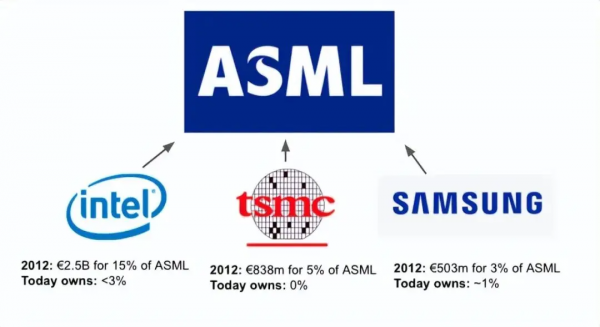EUV實用化工程化的苗頭初現,並依托商業(ye) 上已經成功的DUV光刻機,ASML就啟動了極具進攻性的商業(ye) 競爭(zheng) 策略。2012年ASML主動提出了客戶聯合投資計劃,拿出23%的股份籌集了53億(yi) 歐元的投資,英特爾認購了15%、台積電認購5%,三星認購了3%。拿到錢後,當年ASML立即斥資 26億(yi) 美金收購了完整經曆過DUV和EUV光源變遷的Cymer,另外入股或者綁定德國蔡司,通快等EUV光源核心技術公司的獨家供貨權。日本的佳能和尼康光刻機最終和EUV絕緣,Cymer也成為(wei) 目前世界上唯一的商業(ye) 化EUV光源提供商。