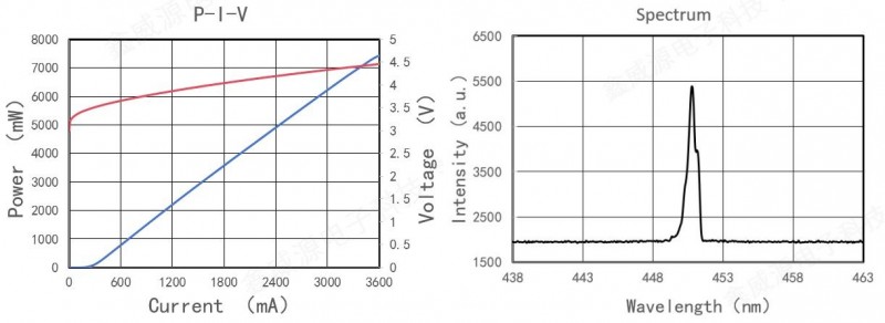 據悉,該企業(ye) 在項目團隊的不懈努力下,廠房竣工後迅速完成了超過一百台套製造設備的安裝和調試,成功打通了芯片製造產(chan) 線。在廠區內(nei) ,公司完成了相關(guan) 技術能力的轉移,並順利進行了產(chan) 品試驗生產(chan) 。在同年9月,鑫威源實現了藍光450nm激光芯片的重大技術突破:閾值電流小於(yu) 0.25A,功率大於(yu) 7W@3.5A,光電轉換效率WPE達到45%,芯片綜合技術指標處於(yu) 國內(nei) 頂尖水平。產(chan) 品技術可以滿足市場對大功率氮化镓半導體(ti) 激光器的應用要求,為(wei) 後續的量產(chan) 奠定了堅實的基礎。