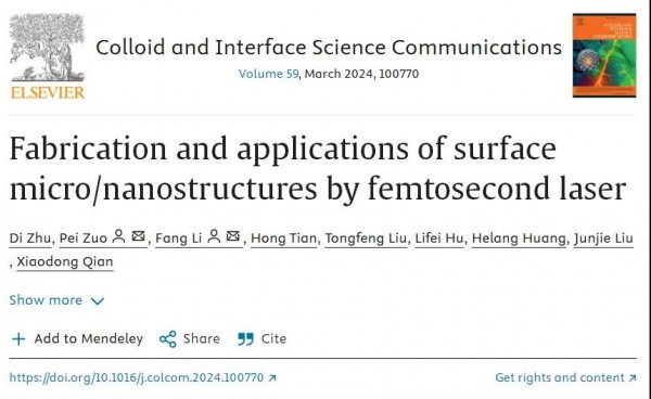 武漢工程大學的研究人員綜述了飛秒激光製備表麵微/納米結構及其應用。相關(guan) 論文以“Fabrication and applications of surface micro/nanostructures by femtosecond laser”為(wei) 題發表在《Colloid and Interface Science Communications》上。