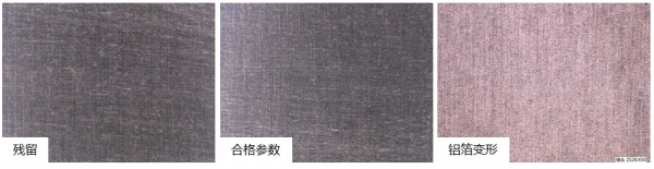 01 極片表麵塗層去除 極耳在焊接前,需要先將其表麵的塗層去除,目前常見的去除塗層的方法主要有機械刮除、貼發泡膠和激光去除。然而,機械刮除方式存在易損傷(shang) 極片且清潔不徹底的風險;貼發泡膠則工藝流程繁瑣,生產(chan) 成本高,且在陽極水性材料上不適用。相比之下,激光具有綠色、高效、對銅箔無損傷(shang) 等優(you) 點,已成為(wei) 去除鋰電池極片塗膜的首選方案。 光至科技針對動力電池極片清洗要求無殘留無損傷(shang) 的特點,推出YFPN-250-GM型號的激光器,擁有10~500ns多達15種脈寬選擇,采用逐層去除的工藝方法,既能保證塗層完全去除,還能確保箔材不受損傷(shang) 。在經過合理的實驗設計及驗證後,得到較好的清洗效果。 陽極清洗較好效果及缺陷品質示例 陰極清洗較好效果及缺陷品質示例