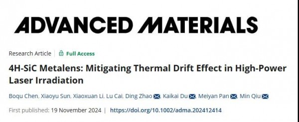近日,西湖大學未來產(chan) 業(ye) 研究中心、工學院仇旻課題組成功研發出一種新型碳化矽光子器件,能夠有效減輕高功率激光加工中的熱漂移問題。團隊利用半導體(ti) 工藝,製備出大口徑、高精度的 4H-SiC 超透鏡,對標高性能商用物鏡,實現了衍射極限聚焦。經過長時間高功率激光輻照,器件性能仍然穩定,幾乎不受熱吸收影響。這一成果代表了高功率激光係統的重大突破,為(wei) 其應用和效率提升開辟了新視野。相關(guan) 研究成果以題為(wei) “4H-SiC metalens: Mitigating Thermal Drift Effect in High-Power Laser Irradiation”發表於(yu) 國際期刊Advanced Materials。
