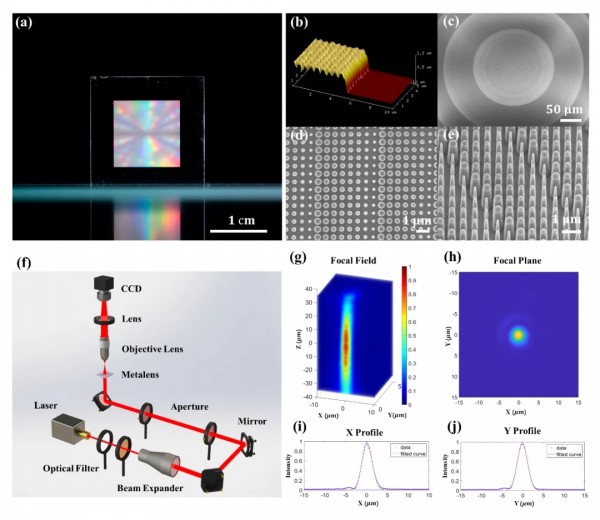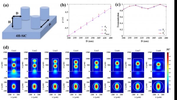 圖3. 4H-SiC超透鏡形貌表征與(yu) 光學測試
