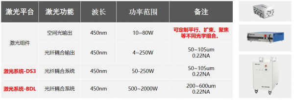 凱普林藍光激光器包含激光組件、激光係統等,波長為(wei) 450nm,功率覆蓋10W-2000W,足夠滿足不同應用場景的多元化需求。其中,2000W藍光激光器采用了600μm芯徑,250W 105μm單模塊加持,專(zhuan) 為(wei) 高功率工業(ye) 應用設計。