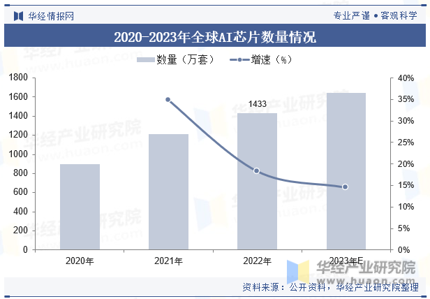 圖3 2020-2023年全球AI芯片數量情況(圖源:華經產(chan) 業(ye) 研究院)