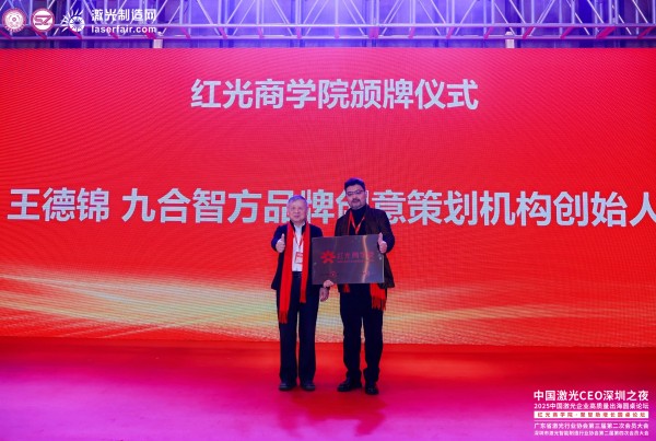 1月11日,由深圳市激光智能製造行業(ye) 協會(hui) 牽頭成立的“紅光商學院”在深圳舉(ju) 行了隆重的開院儀(yi) 式。這標誌著激光行業(ye) 由此踏上人才培育與(yu) 知識匯聚的全新征程。開院儀(yi) 式上,中國工程院院士範滇元為(wei) 九合智方品牌創意策劃機構創始人王德錦頒發“紅光商學院”牌匾,王德錦成為(wei) “紅光商學院”首任院長。