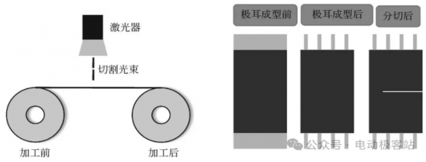 在模切過程中由於(yu) 存在模具損耗快、換模時間長、靈活性差和生產(chan) 效率低等問題,很容易引起工藝不穩定,導致極片裁切品質不一致,引起電池性能下降。而激光模切由於(yu) 無振動偏差,精度高,穩定性好以及不需要更換模具等優(you) 點已經開始逐漸成為(wei) 鋰電池製造過程中的主流,常被用於(yu) 極耳切割成型、極片分切以及隔膜分切等工序。