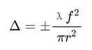 當焦深聚焦深度大,光斑直徑增大,功率密度隨之減小。聚焦深度Δ可按下式估算: