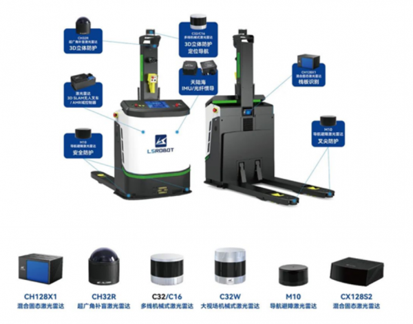 鐳神智能的3D SLAM無人叉車憑借7顆不同類型激光雷達協同作戰