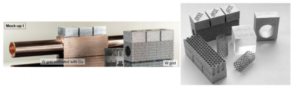 在EUROfusion聯盟框架下,歐洲也研究了PBF - EB鎢的等離子體(ti) 特性。德國卡爾斯魯厄理工學院帶領的團隊用PBF-EB製造鎢樣品,還將其與(yu) 新的銅冷卻結構組合。這些鎢樣品在模擬聚變反應堆條件的各種測試裏表現良好:在Jülich的JUDITH設施中,經熱衝(chong) 擊測試未出現宏觀故障;在Garching的GLADIS設施進行高熱通量暴露測試時,雖有近表麵晶粒生長現象,但整體(ti) 性能穩定。